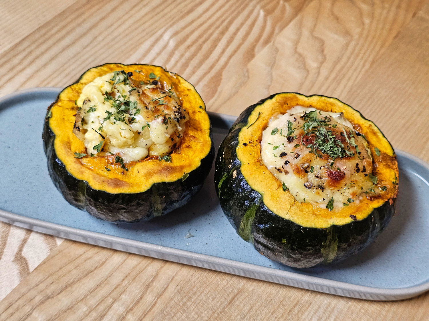 - 익힌 호박을 반으로 자르고 씨를 떼어냅니다.