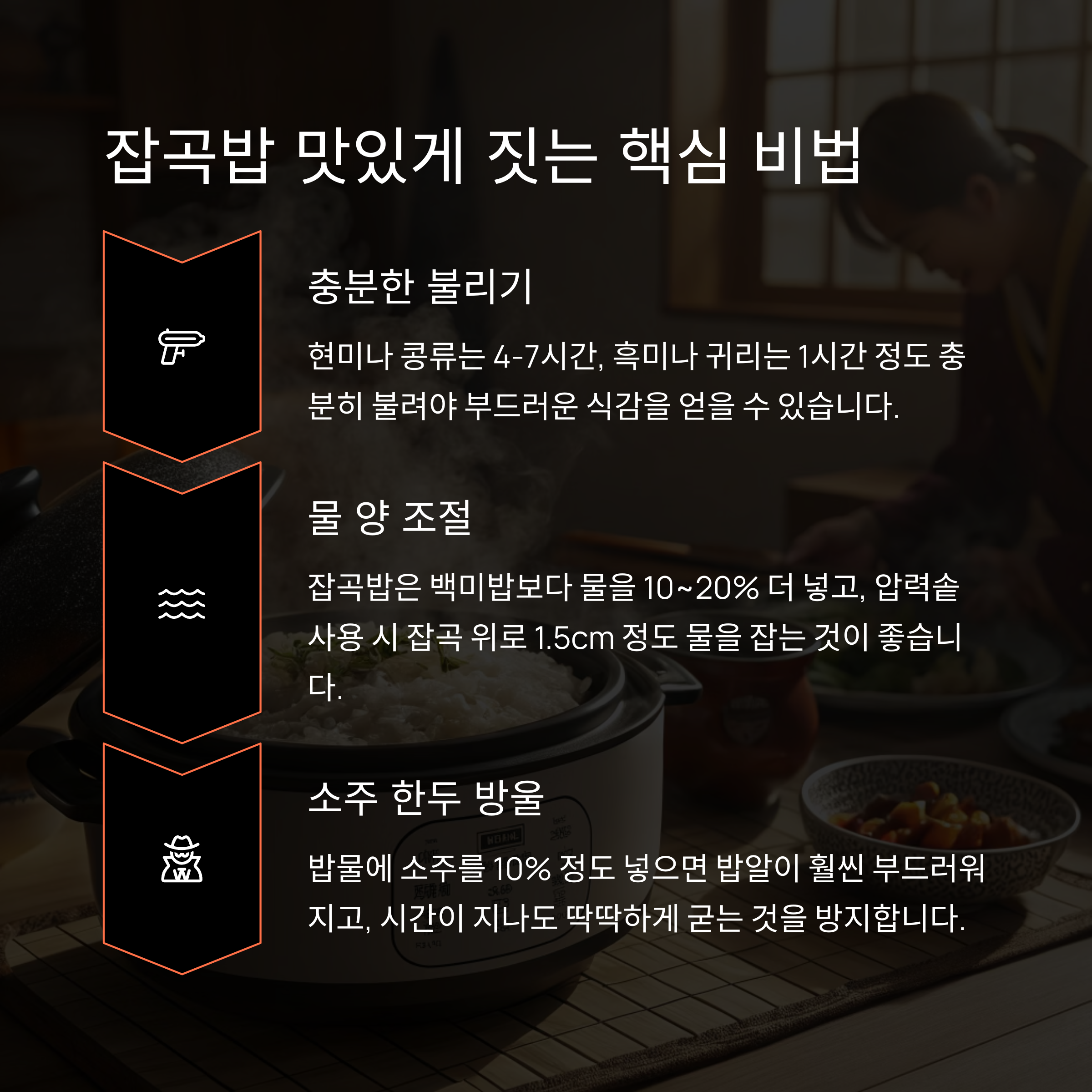 2. 맛있는 잡곡밥 황금 비율 및 조리 팁 (잡곡밥 맛있게 짓는 법)