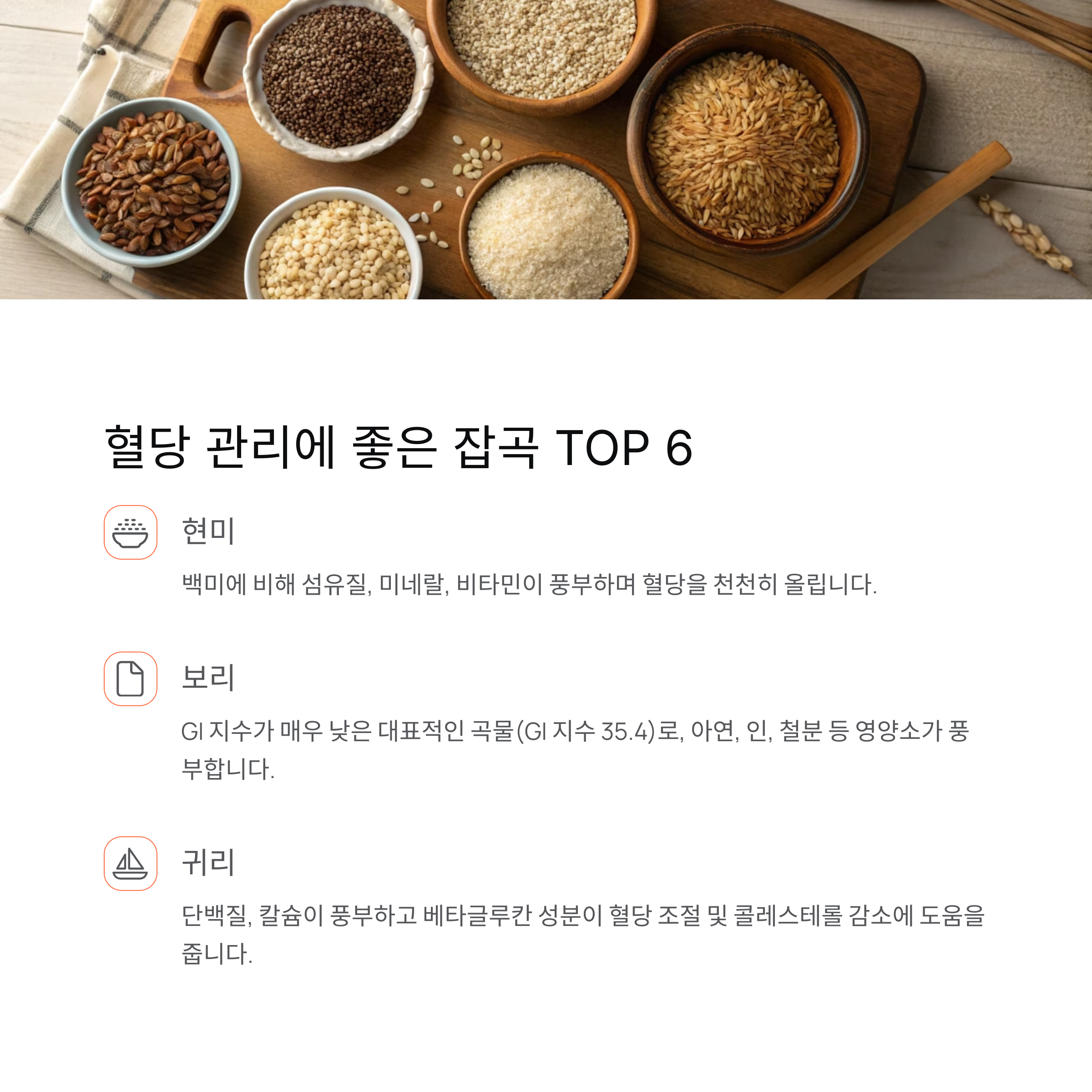 1. 혈당 관리에 좋은 잡곡 선택 (GI 지수 낮은 잡곡)